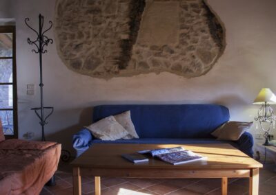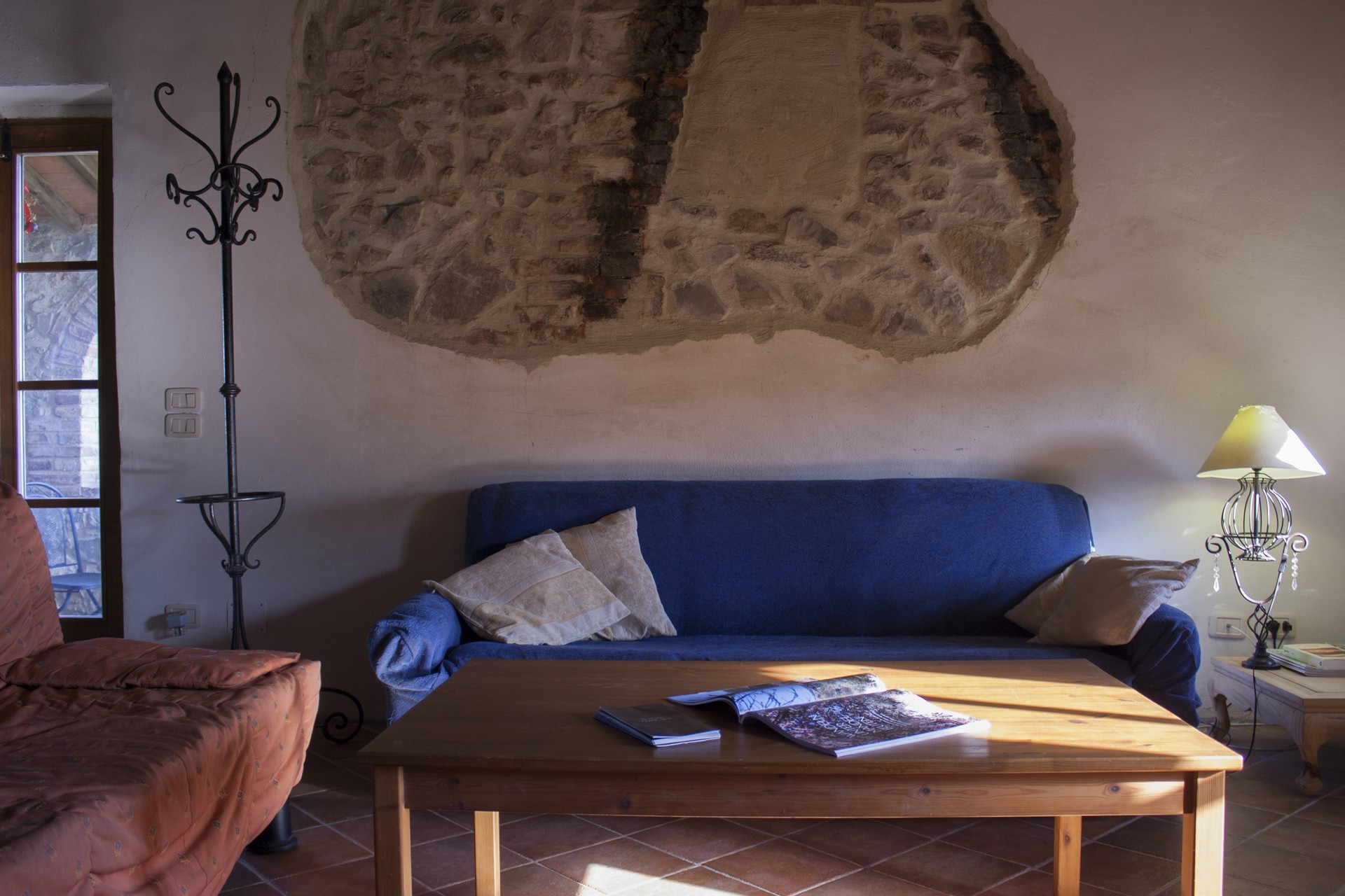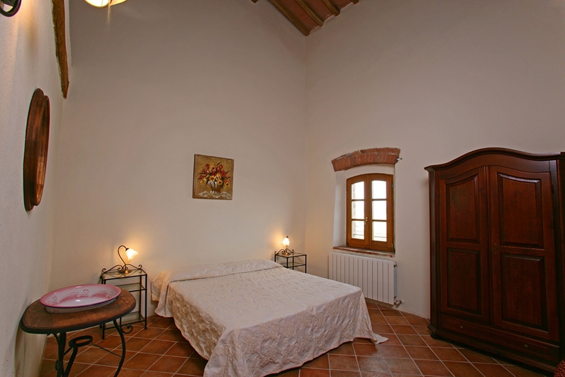 L’appartamento grande, “Gli Archi”, si sviluppa su ben 150 mq e si trova al primo piano ed in Mansarda del Casolare meraviglioso. Vi si accede attraverso una imponente scala in pietra. Davanti all’ingresso c’è una veranda con panorama fantastico. Da qui si entra in un soggiorno molto ampio con tre divani. L’appartamento accoglie 2 camere molto spaziose, un grande bagno con finestra costituito da vasca/doccia, bidè, WC, lavabo/armadio e poi il tinello con tavolo da pranzo, cucina in muratura con forno e lavastoviglie + dispensa al piano primo. Dal soggiorno si accede inoltre attraverso una porta ad una camera matrimoniale in mansarda con bagno privato doccia, bidè, WC, lavabo/armadio anche esso con finestra.