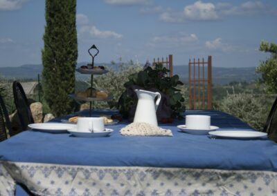 Per divertirsi a cucinare all’aperto e gustare delle specialità grigliate abbiamo un bellissimo barbecue in muratura in giardino sotto un pergolato super panoramico con infinite piante aromatiche per arricchire le pietanze.
